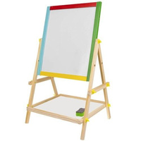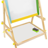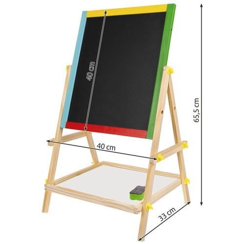 oboustranná – dvě různé pracovní plochy: černá strana pro kreslení křídou a bílá strana pro psaní fixami, děti mohou využívat různé tvůrčí techniky a rozvíjet tak svou kreativitu a dovednosti při hře a učení