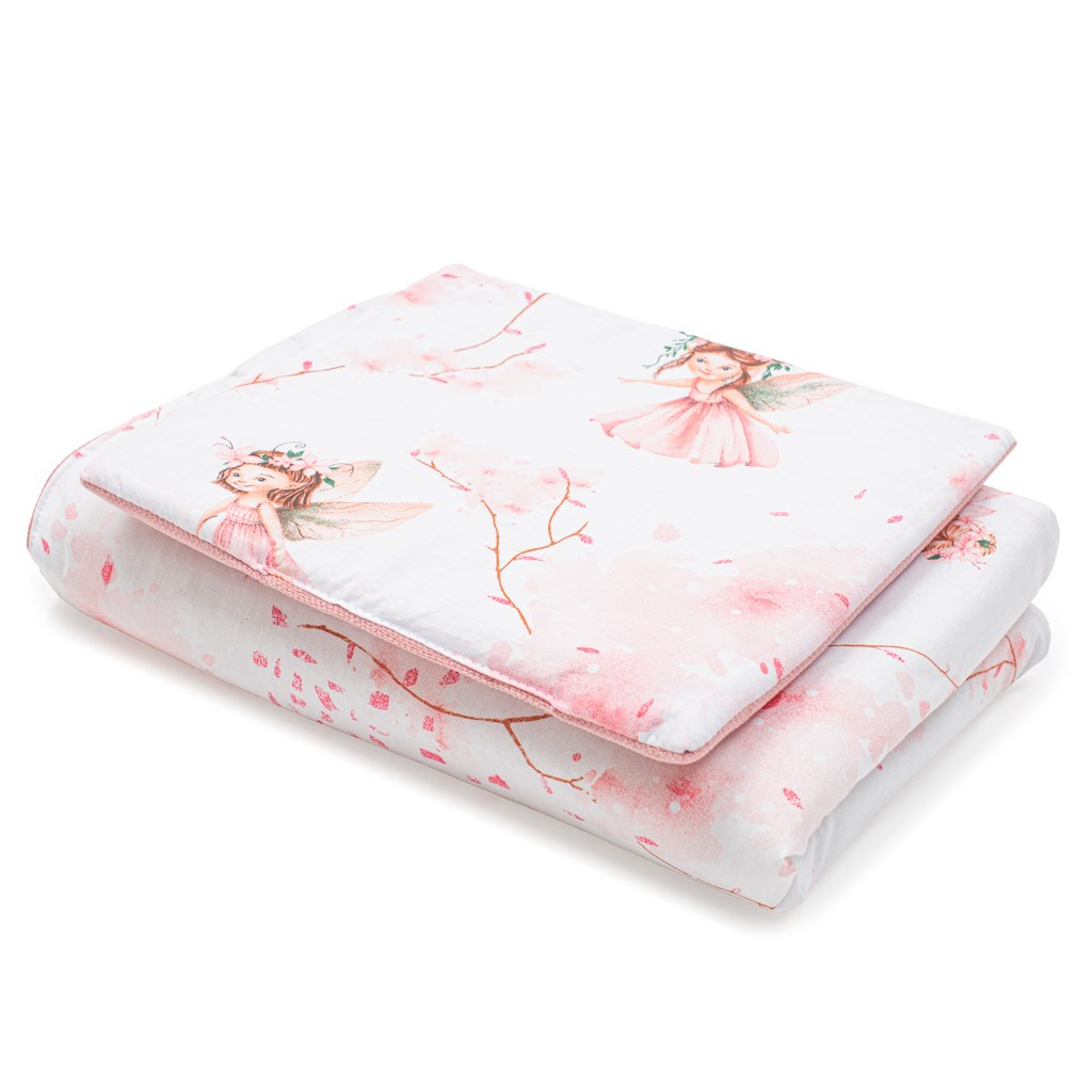 Nádherný oboustranný set New Baby Víly do kočárku. Set je vyroben ze dvou typů tkanin. Bavlněný materiál s krásným dětským motivem z jedné strany a Velvet materiál z druhé strany. Velvet je velice příjemný a jemný na dotek a po dlouhou dobu si zachovává svůj původní tvar. Je ideální jak pro miminka od narození, tak pro větší děti jako deka na hraní, do kočárku nebo na ven. Set obsahuje polštářek a přikrývku. Klademe důraz na kvalitu a proto je set z Velvet ušitý z velmi kvalitního materiálu, který nepouští barvu a nevyvolává alergické reakce. Set je jemný na dotek, hřejivý, tulivý, jedinečný a velmi odlišný od ostatních. Vše je vyplněno antialergickým vláknem. Složení: z jedné strany 100% bavlna potištěná krásným dětským vzorem, druhá strana je Velvet látka-100% polyester, výplň 100% antialergické vlákno. Materiál odpovídá normě Oeko-Tex Standard 100. Rozměry: polštářek: cca 30x25 cm, přikrývka: cca 75x50 cm. Tyto výrobky jsou bezpečné, protože: