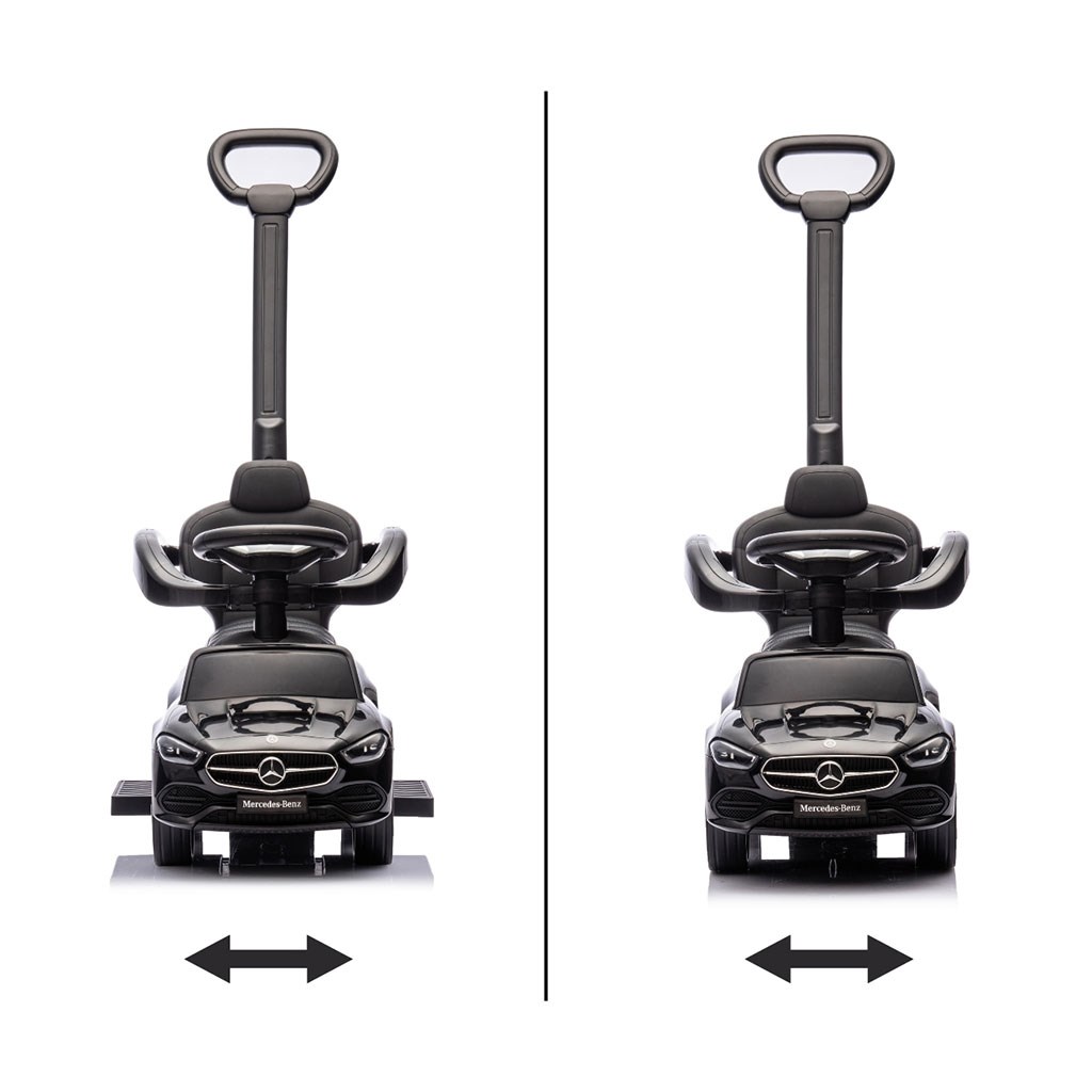 Realistický design inspirovaný modelem Mercedes C-Class zaujme detaily jako elegantní provedení, gumová kola, logo značky, volant se zvuky a "přístroje," což podporuje dětskou představivost a umožňuje kreativní hru.
