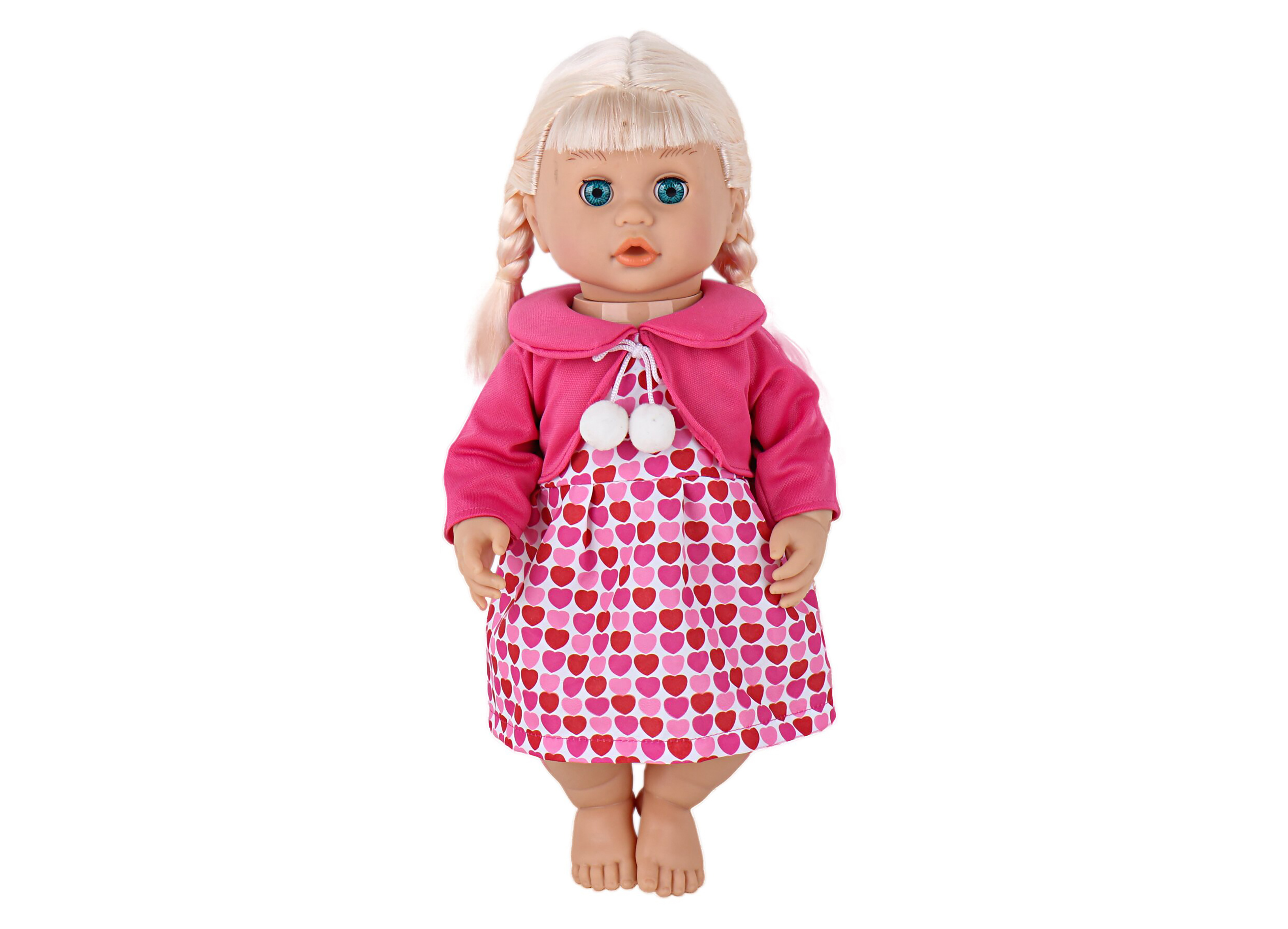 Panenka opakující. Velikost 40cm. 2xAA baterie nejsou součástí. Návod na obale. Po zmáčknutí pravé ruky zazní zvuk a panenka začne nahrávat. Mluvte k panenčiným ústům. Dalším zmáčknutí pravé ruky zazní dvojitý zvuk a nahrávání je u konce. Zmáčknutím levé ruky panenka přehraje nahrávku.