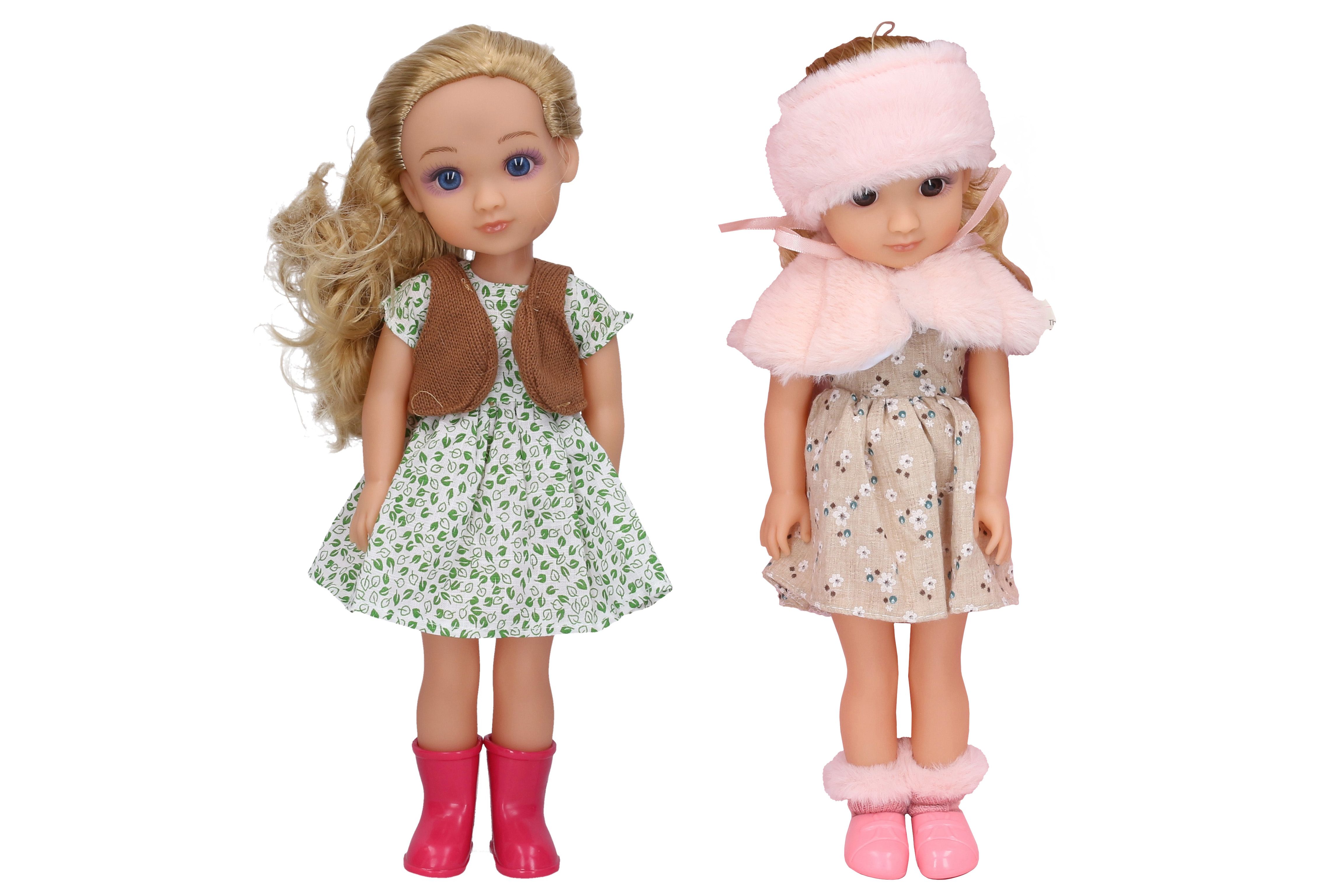 Panenka v šatech s efekty. Velikost 35cm. Zvukové efekty. obsahuje: panenku, kabelku, hřeben. 3xAG13 baterie součástí. 2 varianty - růžová, zelená.