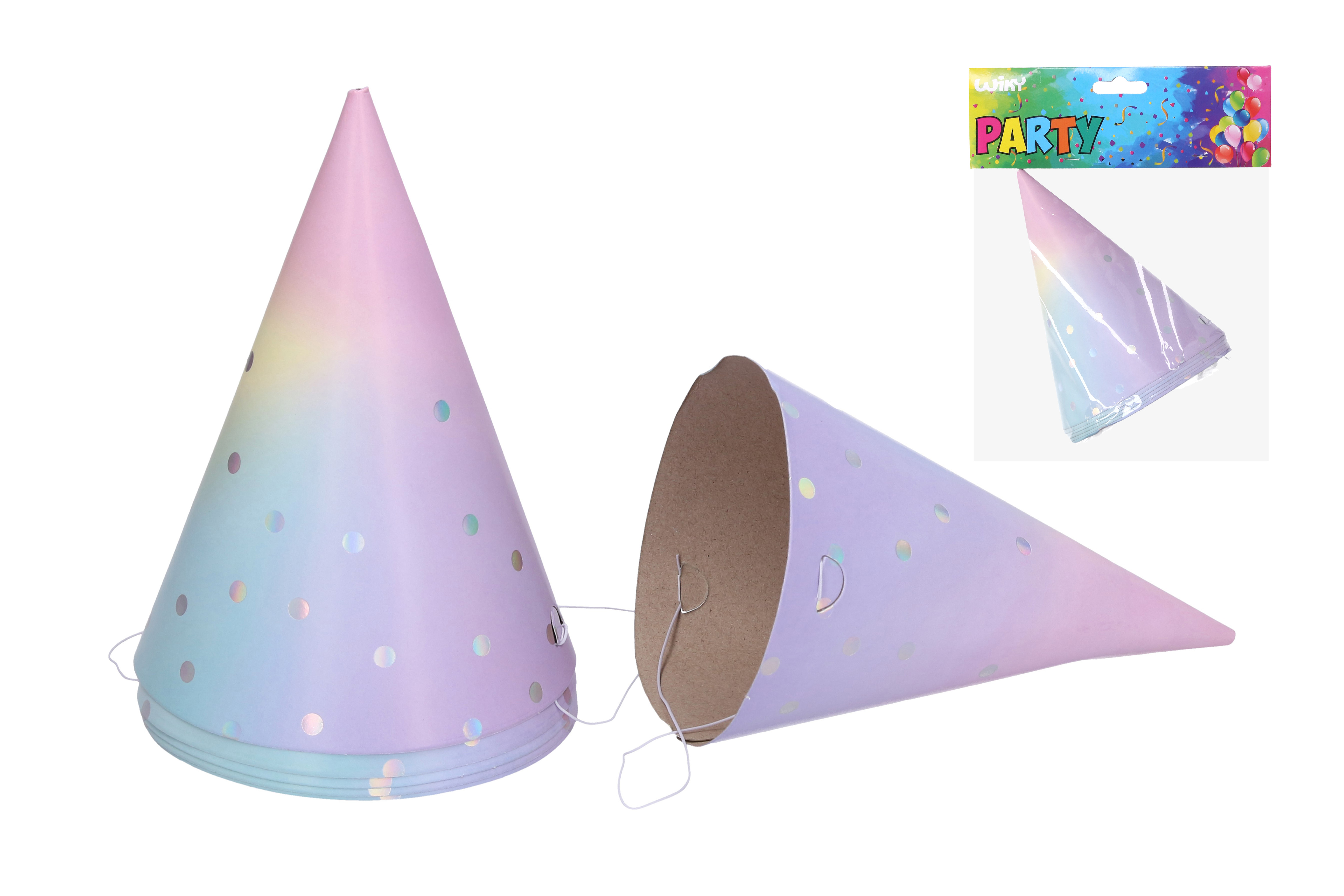 Papírové párty kloboučky PASTEL o velikosti 15 cm. Balení obsahuje 6 ks.