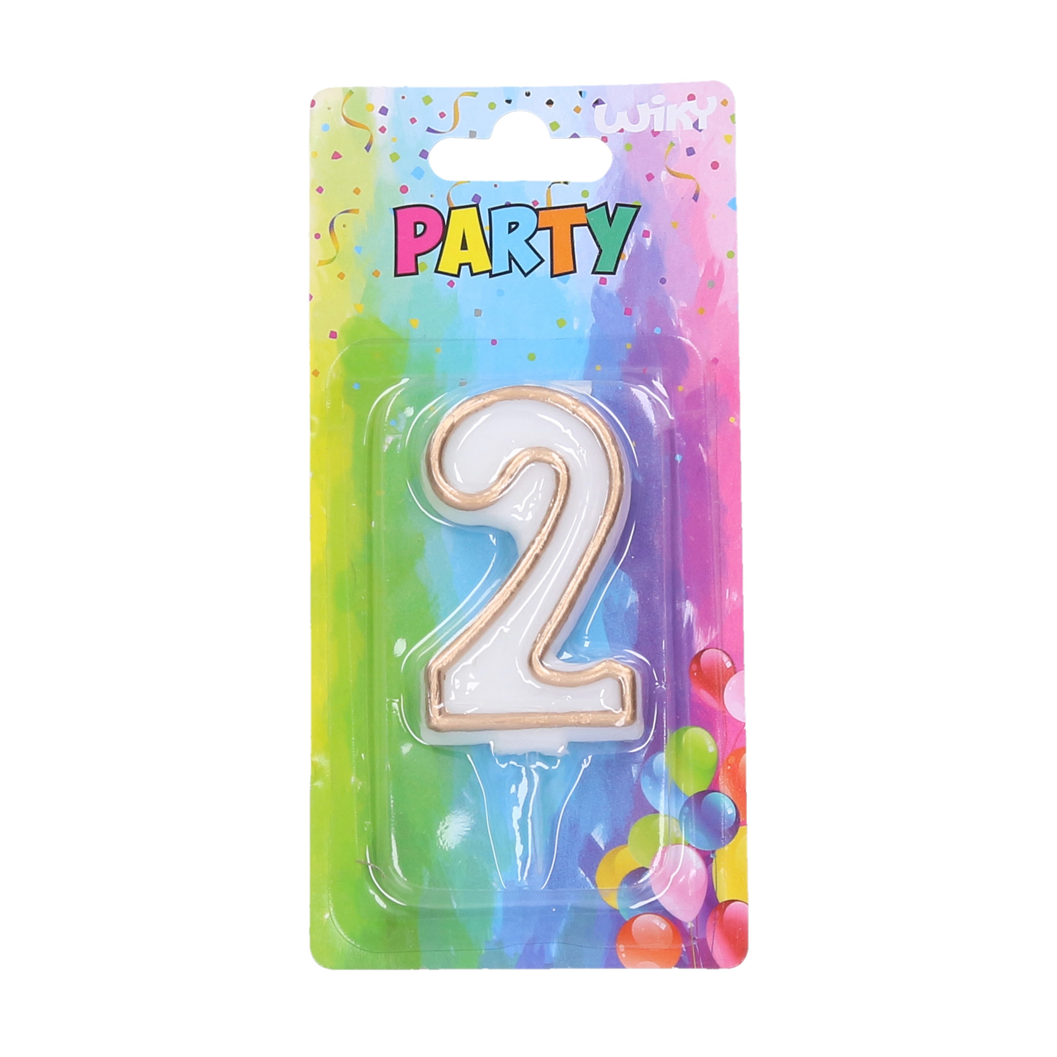 Bílá svíčka se zlatým lemem ve tvaru čísla se stojánkem z vosku pro pohodlné a pevné umístění na dort.