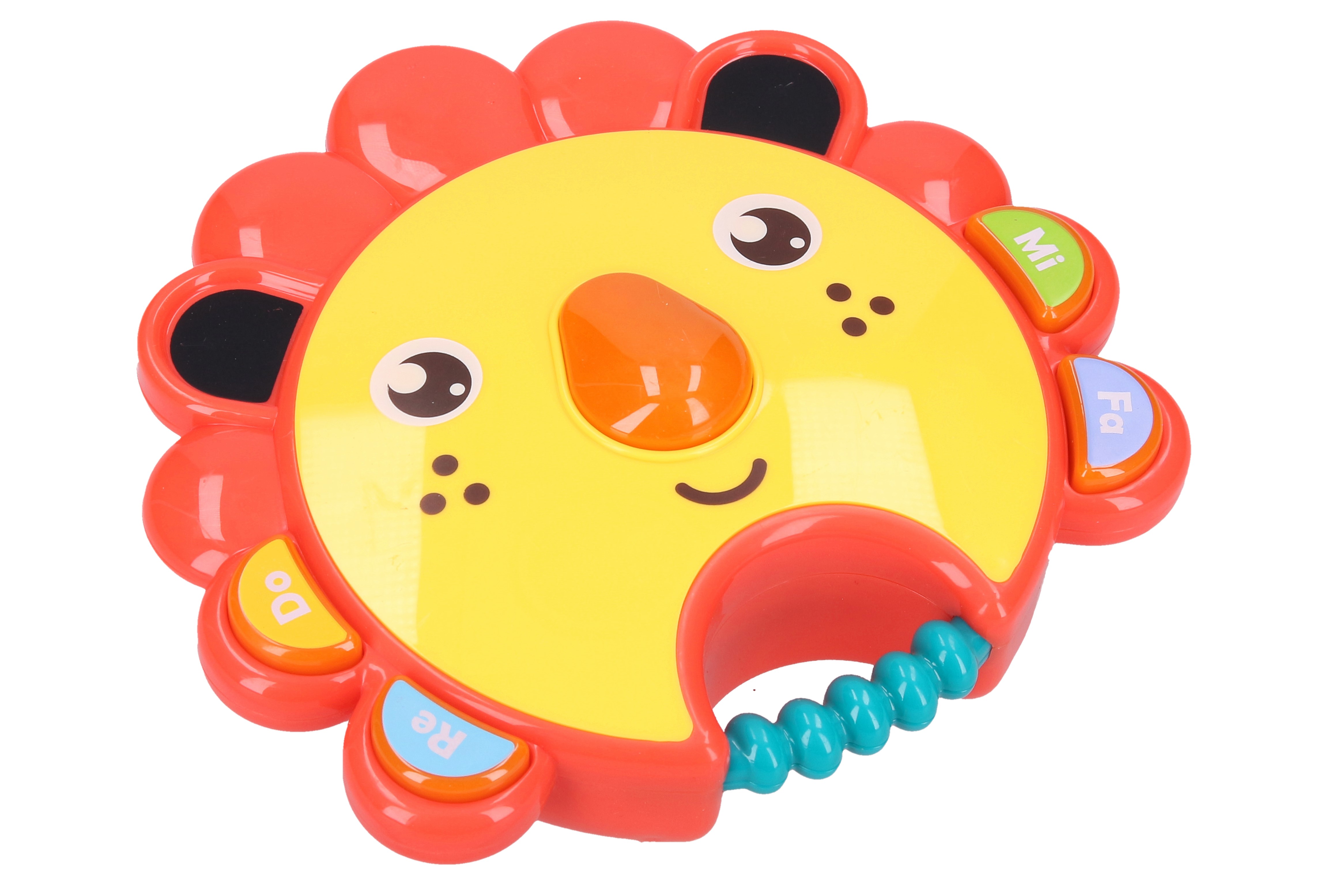Piánko s melodiemi lev. Rozměry 15x14 cm. Jednotlivé klávesy aktivují jednotlivé tóny. Stiskem nosu se přepínají melodie. Klávesy a nos vydávají světelné efekty. Přepínač na zadní straně má 3 polohy - OFF, střední hlasitost, max hlasitost. 3xAAA baterie jsou součástí.