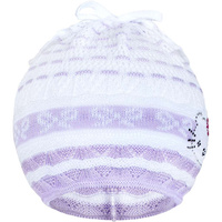 Jarní pletená čepička-šátek New Baby. Čepičku zdobí obrázek kočičky s třpytivými kamínky. Čepička je ušitá z prodyšného materiálu, proto je vhodná pro jarní i podzimní dny. Ideální pro malé i větší slečny. Složení: 100% bavlna. Materiál je pružný. Obvod kolem hlavičky cca 40-50 cm.