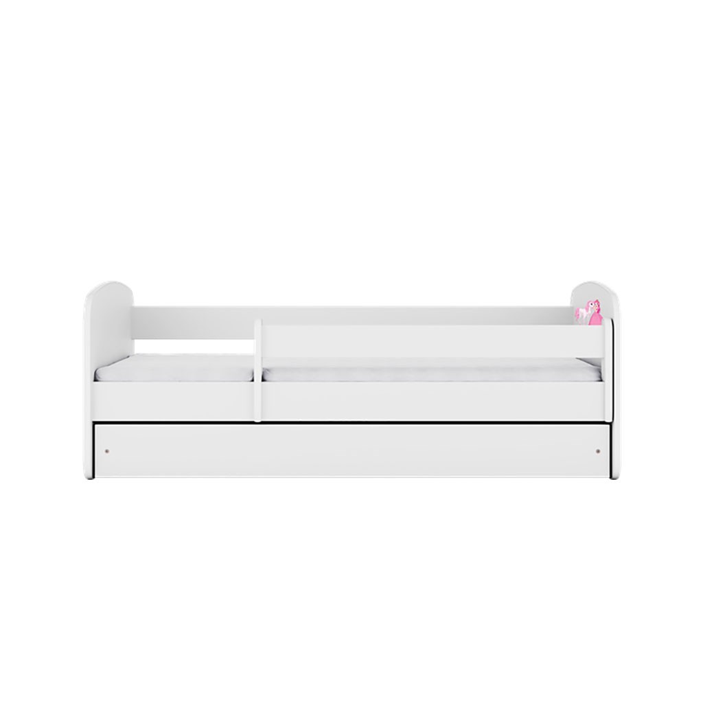 Jednolůžková postel se zábranou je vyrobena z kvalitní nábytkové desky o tloušťce 18 mm. Je dostupná v několika velikostech a barevných variantách. Pohádkové motivy zajišťují široký výběr a možnost personalizace.