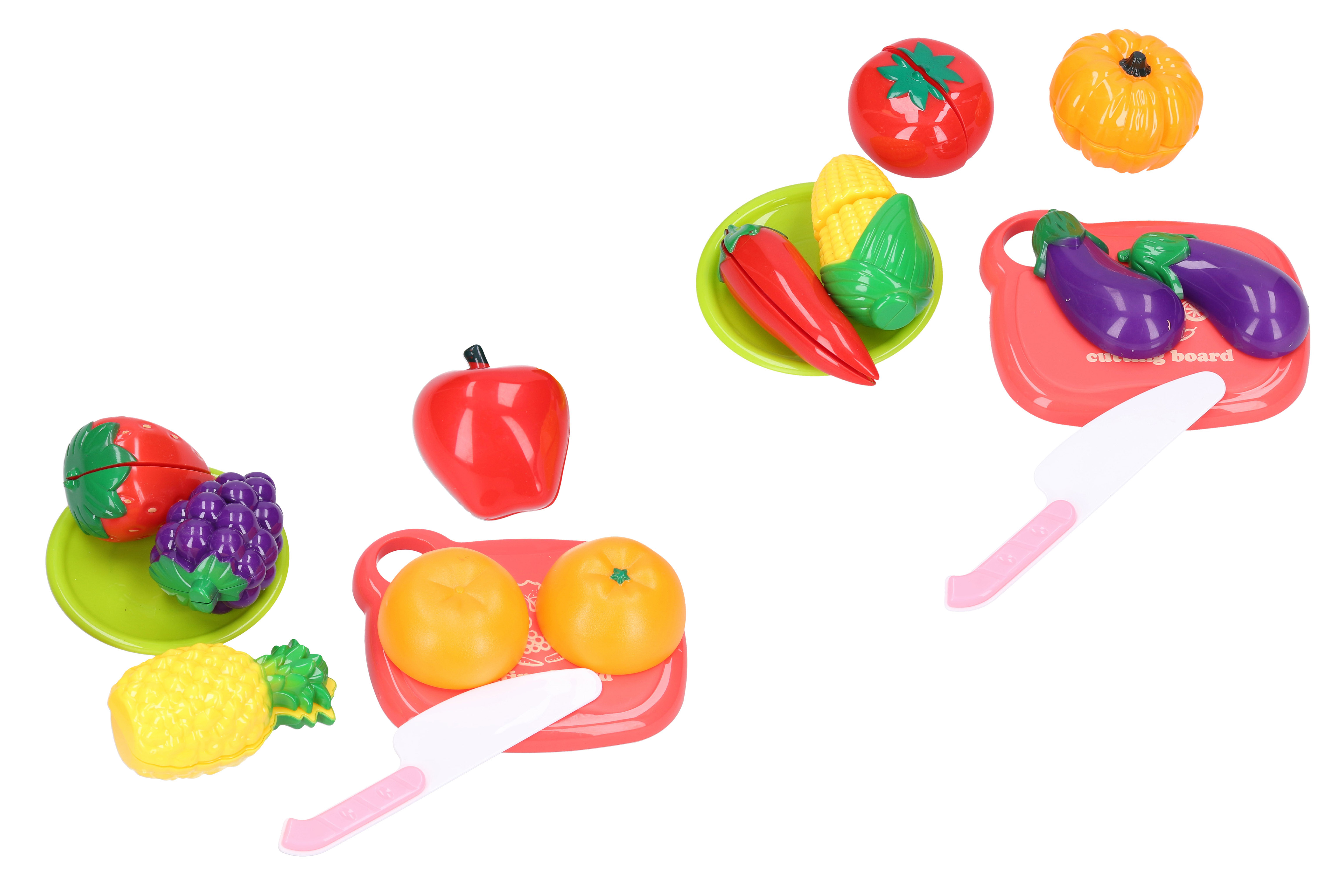 Potraviny ke krájení. Rozměry krájecího prkénka 12,5x10x1 cm. 2 varianty - zelenina, ovoce.