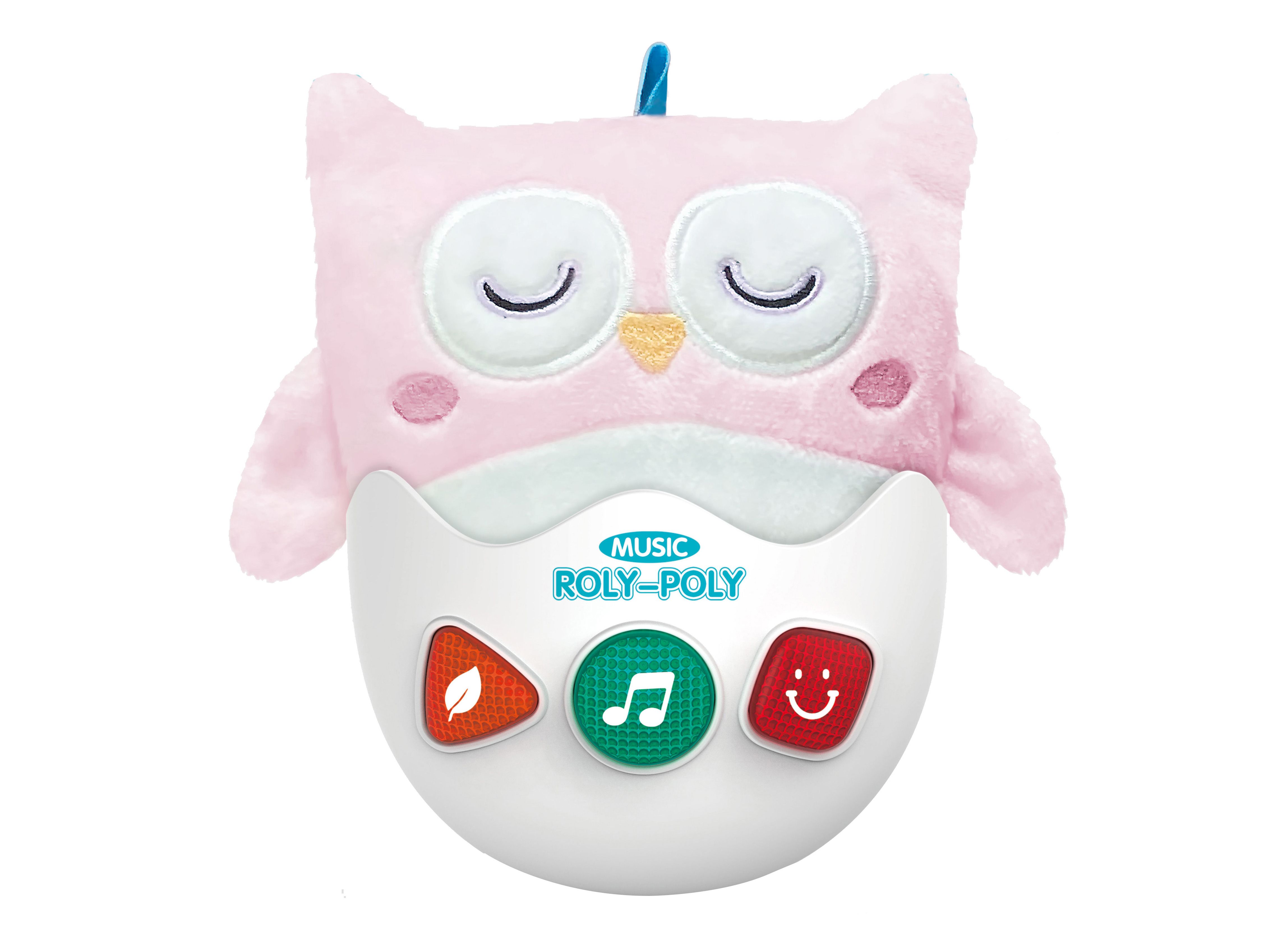 Roly-poly plyšová sova s efekty. Velikost 17cm. Baterie 2xAAA nejsou součástí. Světelné a zvukové efekty.