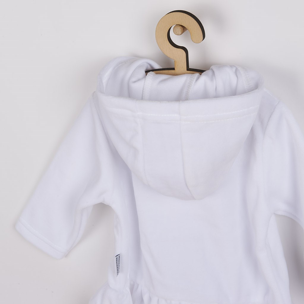 Stylová dětská semišková mikinka s kapucí české značky New Baby Baby. Mikinka má zapínání na zip po celé délce a je ukončena roztomilým volánkem. Mikinka je delší a tím skvěle nahradí tenčí kabátek, nebo svetřík. Pro New Baby je velmi důležitá spokojenost zákazníka a právě proto je mikinka vyrobena z velmi příjemného materiálu, ve kterém se bude vaše miminko cítit velmi pohodlně. Mikina v kombinaci s legínkami s naši nabídky poslouží jako krásný komplet na doma i procházky. Fantazie v oblékání nezná hranic a záleží jen na vás, jak mikinku dokážete doladit s oblečením značky New Baby. Složení: 80% bavlna, 20% polyester.