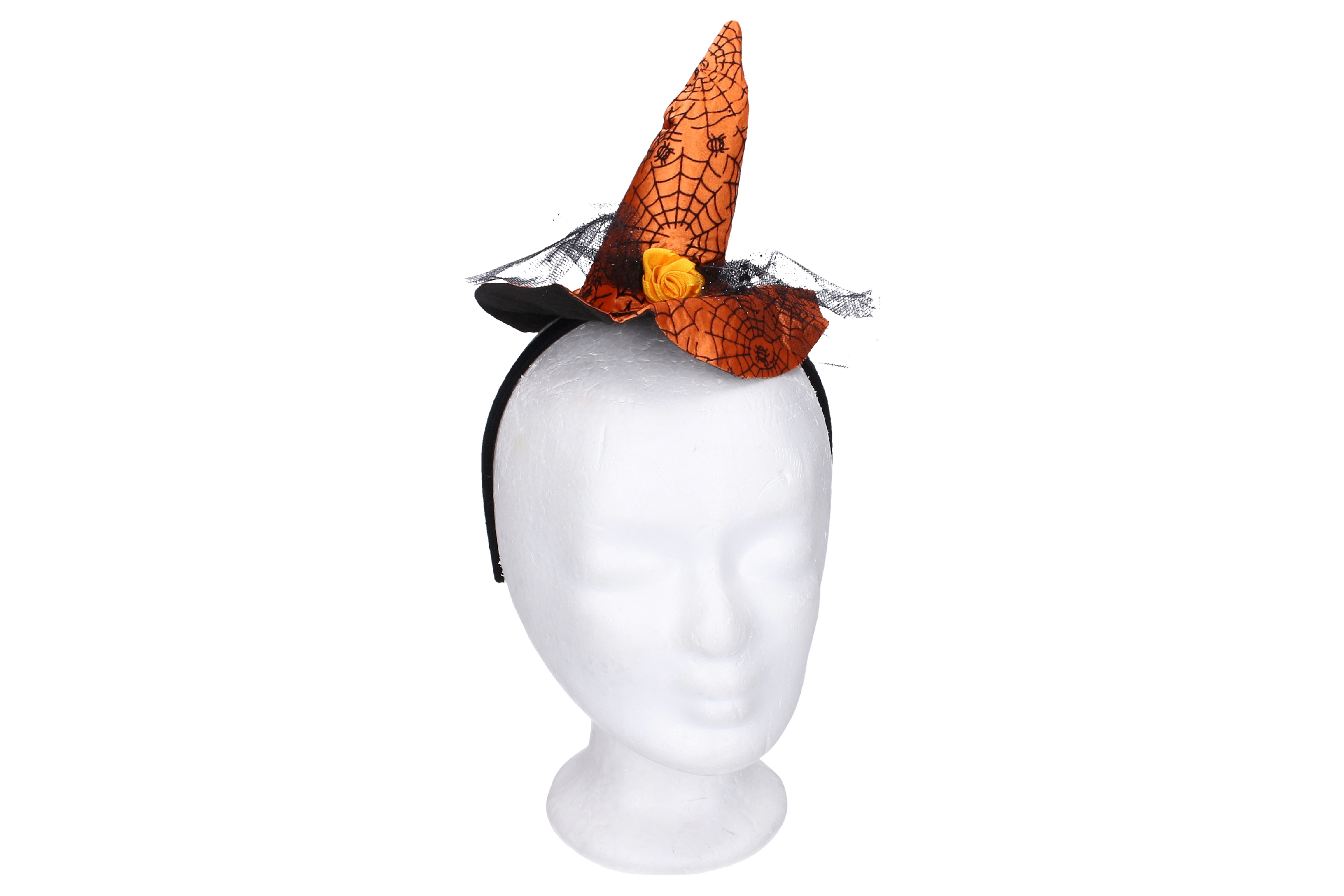 Karnevalový doplněk - čarodějnická čelenka s ozdobou o velikosti 14,5 x 26 cm