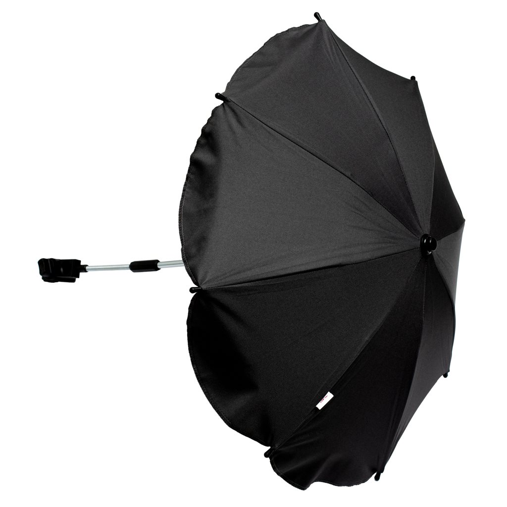 Univerzální, barevný slunečník - deštník na kočárek s pružinou pro lepší nastavení sklonu. Chrání Váše dítě před slunečním zářením. Univerzální držák zajišťuje kompatibilitu s většínou kočárků. Slunečník je možno rychle a snadno demontovat. Rozměry: 65 cm průměr klobouku, výška cca 60 cm. Rozestup úchytu cca 2,5 cm. Barevné provedení může být tmavší (světlejší) než je vyznačeno na obrázku.