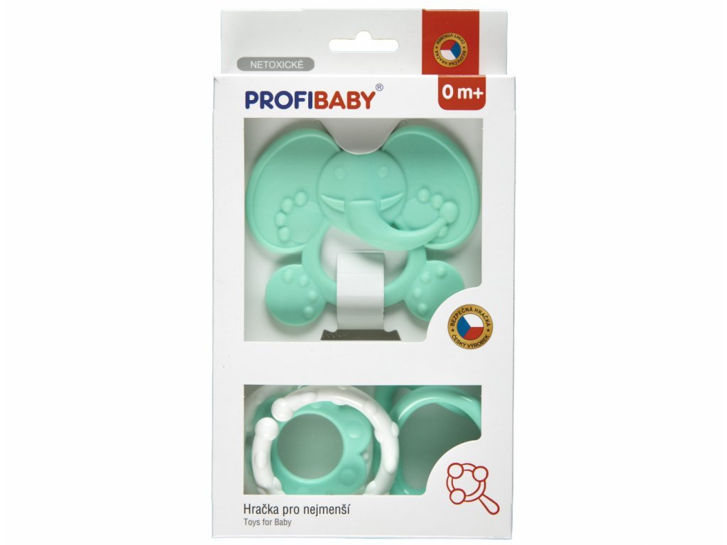 Souprava kousátko + tvary. 3 varianty - slon, medvěd, had. Různé barevné varianty - červená, mentolová, modrá, růžová, zelená, šedá, bílá.