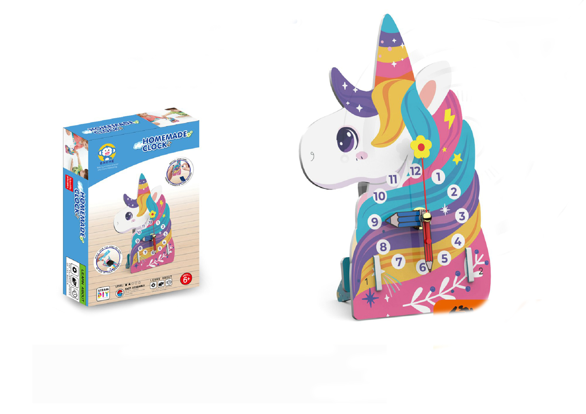 Stavebnice hodiny jednorožec. 1xAA baterie není součástí.