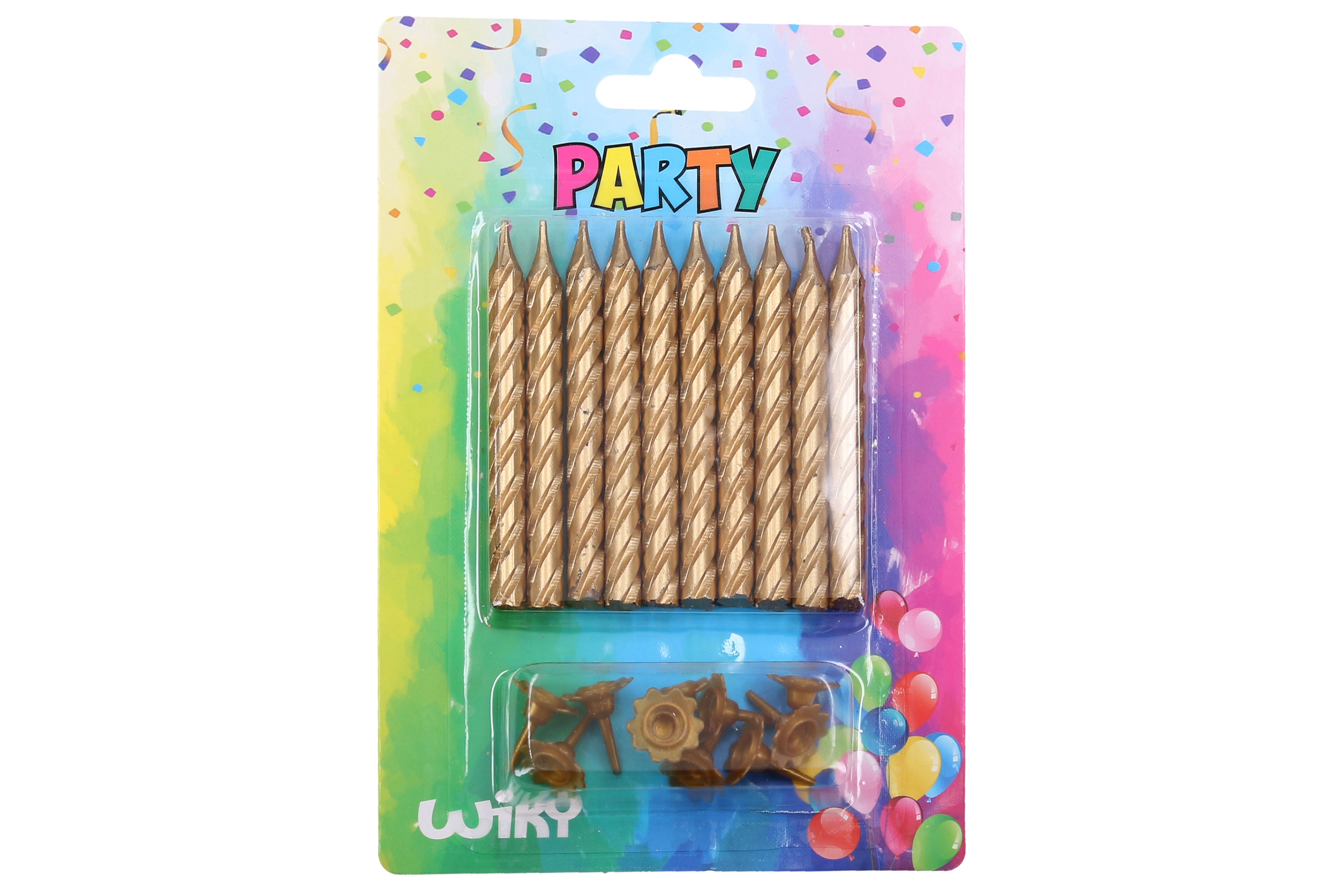 Svíčky 10ks + stojánky 10ks zlatá barva.