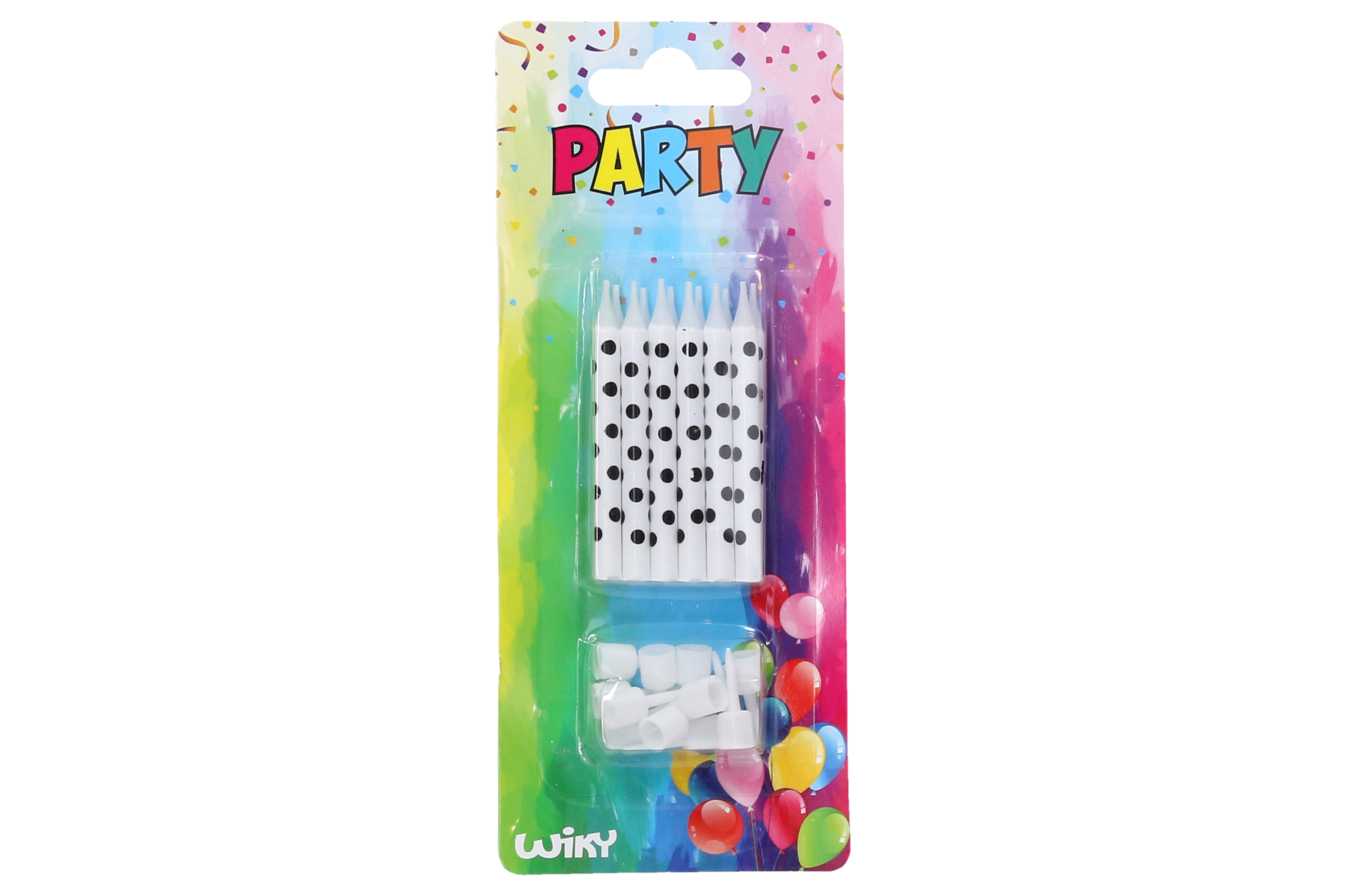 Svíčky 12ks + stojánky 12ks černé tečky.
