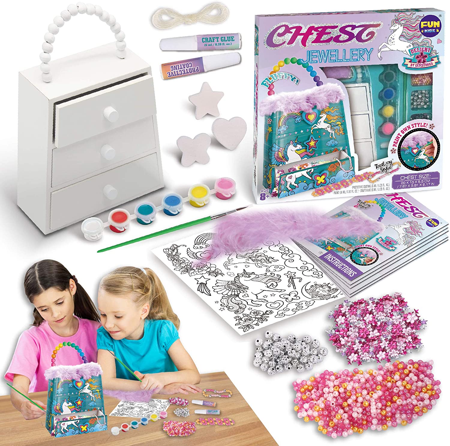 S touto sadou si můžeš vyrobit vlastní dřevěnou šperkovnici a ozdobit ji podle své fantazie. Šperkovnice na všechny Tvé poklady. Sada obsahuje: dřevěnou šperkovnici štětec 6 barev šňůrku lepidlo barevné korálky a další ozdoby Rozměr: 20x15x5,5 cm Doporučený věk: od 6 let
