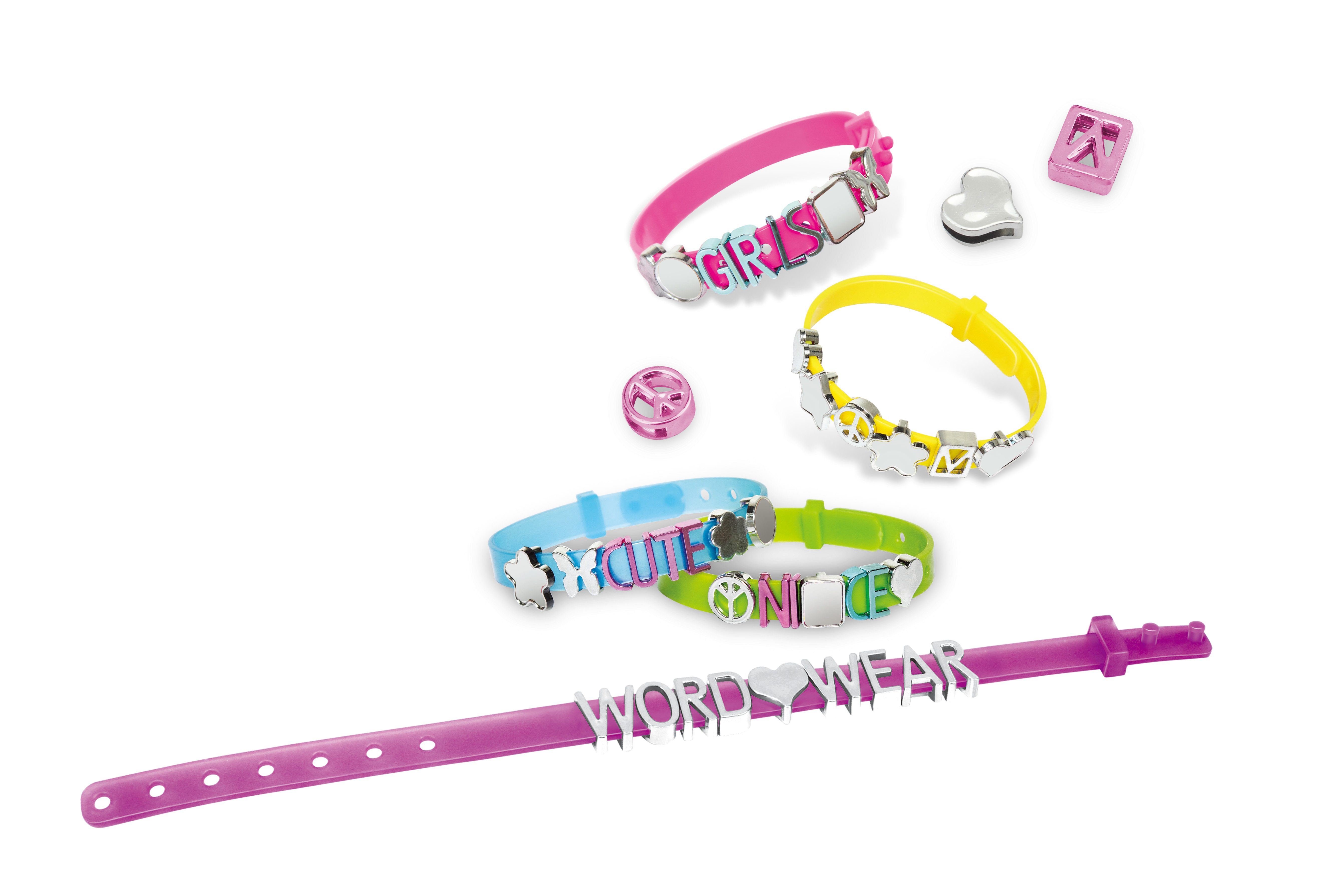 Balení obsahuje 6 náramků, 20 znaků, 76 písmenek.