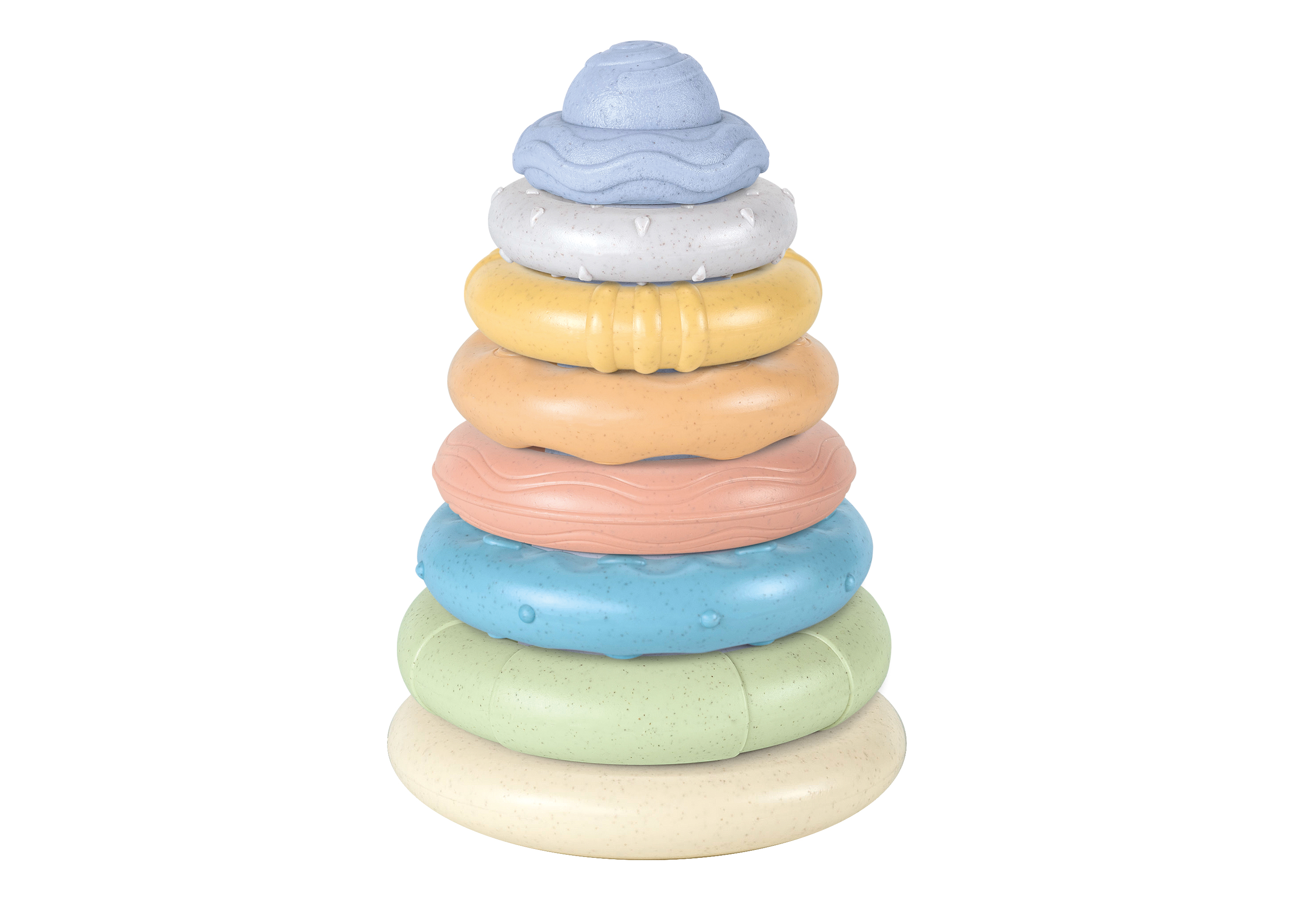 Věž kroužky na tyčce. Velikost 20 cm. Kroužky zle navlékat na tyč, nebo spojovat v řetěz.