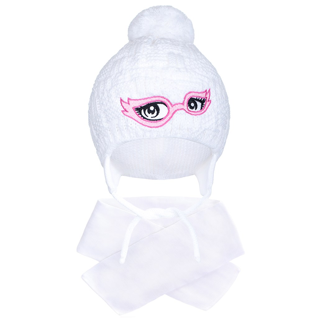 Nádherná zimní pletená čepička New Baby. Čepičku zdobí nádherný obrázek škrabošky. Má zavazovací tkaničky, úpletovou podšívku a roztomilou bambulku. Složení 100% bavlna. Čepička je vhodná pro zimní dny. Ideálni pro malé i větší děti. Čepička je tvarovaná tak, aby kryla ouška. Obvod kolem hlavičky 44-48 cm. Šála: rozměr: cca 96 cm.