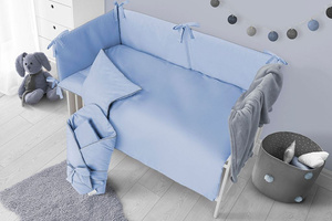 Čudovit otroški bombažni 5-delni komplet za posteljico Belisima Palermo za dojenčke. Izdelan je iz mehkega in prijetnega materiala. Komplet vsebuje prevleko za blazino velikosti cca 40x60 cm, prevleko za odejo velikosti cca 100x135 cm, obrobo dolžine cca 180 cm, polnilo za blazino in odejo. Material 100% bombaž.