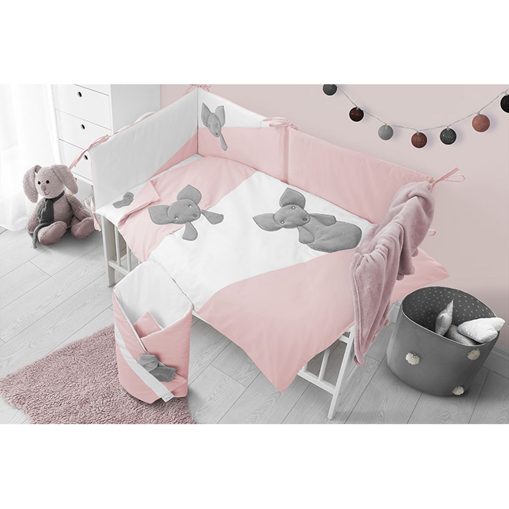Čudovit otroški bombažni 5-delni komplet za posteljico Belisima Mouse za dojenčke. Komplet je okrašen s čudovitim motivom mišk. Izdelan je iz mehkih, prijetnih materialov. Komplet vključuje prevleko za blazino velikosti približno 40x60 cm, prevleko za odejo velikosti približno 90x120 cm, zaščitno mrežo dolžine približno 180 cm, polnilo za blazino in odejo. Material 100% bombaž.