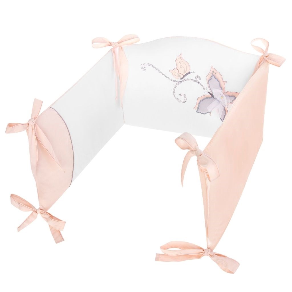 Lepa otroška bombažna 6-delna posteljna garnitura Belisima Butterfly za dojenčke. Narejena je iz mehkih, prijetnih materialov. Garnitura vsebuje prevleko za blazino približno 40x60 cm, prevleko za odejo približno 100x135 cm, ograjo približno 180 cm, polnilo za blazino in odejo ter zaveso. Material 100% bombaž.