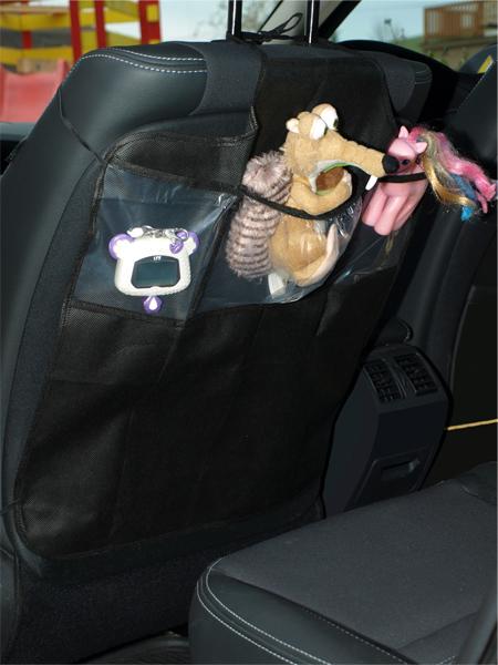 Otroški organizator je idealen za shranjevanje stvari med potovanjem z avtom in hkrati ščiti pred umazanijo sprednjega sedeža. Ta otroški organizator za avto je opremljen s šnuro na zgornjem delu in elastično gumico na spodnjem delu, da ga pritrdimo na sprednji sedež. Organizator vsebuje tri žepke iz ojačane folije, v katere lahko shranite otroške najljubše igrače. Lahko ga obesite tudi v otroški sobi. Dimenzije: 57x49 cm.