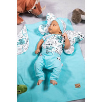 Lepa bombažna dojenčkovska kapica-šal Nicol Dinosaurus. Kapica je šivana v stilu šala z elastičnim robom z motivom dinozavrov. Zaradi prijetnega in kakovostnega materiala se bo dojenček počutil zelo prijetno in udobno. Sestava: 100% bombaž.