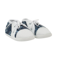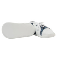Otrokovske stilizirane in udobne copatke češke blagovne znamke New Baby za dojenčke. Lepi čevlji so v slogu tenisic z modernim videzom in vezanjem na vezalke. Copatke so popolna izbira kot prve čevlje za vašega dojenčka. Copatke se prilegajo nogici in imajo širok notranji del, kar omogoča svobodno gibanje prstov in mišic. Izdelek ni namenjen za hojo. So zelo lahke z tankim sintetičnim podplatom. Sestava: 80% bombaž, 20% poliestr. Podplat: sintetični material. Dolžina notranje vložka 10 cm. Namenjeno za otroke 0-3 mesece. Primerne za fantke in punčke. Dobavljeno v praktični EKO škatli. Primerne tudi kot ljubko darilo. Opozorilo: pod tekstilno vložko se nahaja papirnata vložka, ki drži obliko copatke. Pred prvo uporabo odstranite to papirnato vložko.