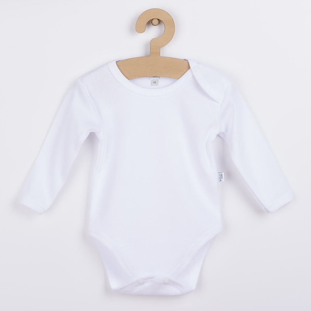 Klasicna bela bombažna dojenčkasta bodi Bobas Fashion z dolgimi rokavi. Bela bodi ima zapiranje z gumbi na ramenu in med nogami, kar olajša oblačenje in menjavanje pleničk. Zelo prijeten in kakovosten material. Idealen za dojenčke. Dimenzije: obseg okoli prsnega koša cca 40 cm, dolžina od ramen cca 34 cm, dolžina rokava cca 20 cm. Sestava: 100% bombaž.