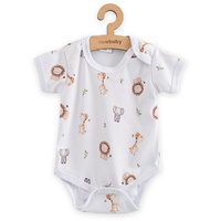 Čudovito bombažno dojenčkovo bodi s kratkimi rokavi češke blagovne znamke New Baby For Babies za dojenčke. Otroško bodi je celovito potiskano z domiselno otroško motiviko. Praktično zapiranje na gumbih na ramenih in med nogami močno olajša oblačenje in previjanje.