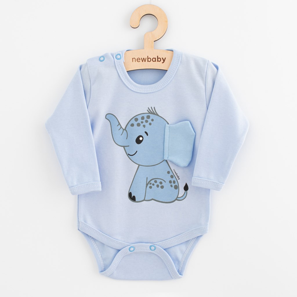 Lep bodiček iz bombaža z dolgimi rokavi blagovne znamke New Baby Happy Elephant za dojenčke. Bodi je okrašen s simpatično sliko slončka s 3D ušesom, ki otrokom služi tudi kot pomirjujoč element ali igračka pri uspavanju. Praktično zapiranje s pritisnimi gumbi na ramenu in med nogami močno olajša oblačenje in previjanje. Sestava: 100% bombaž. OEKO-TEX STANDARD 100. Verjamemo, da bo naša avtorska kolekcija navdušila z kakovostjo, mehkobo in dizajnom.