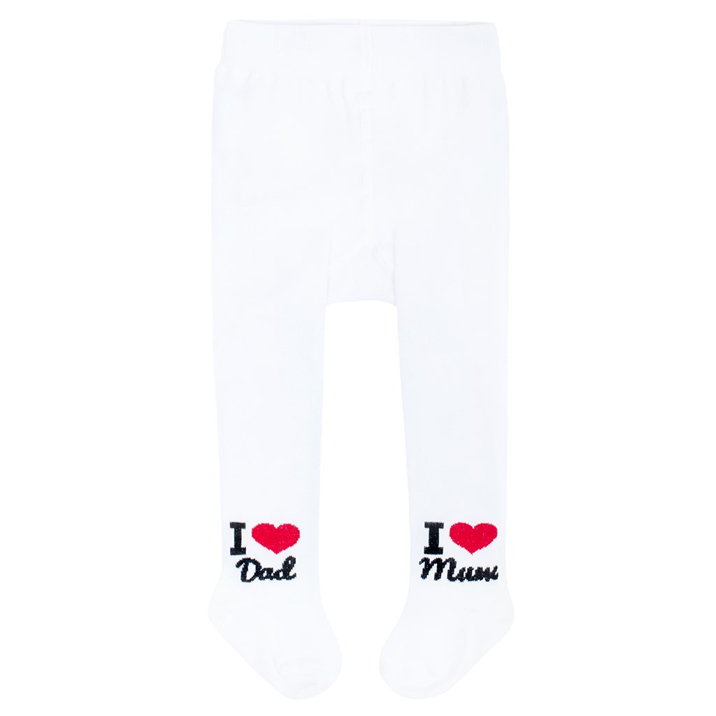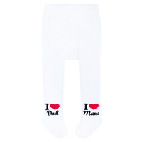 Bombažne nogavičke New Baby. Nogavičke imajo prikupno sliko na zadnjici z napisom I Love Mum and Dad. Na eni nogici je napis I Love Mum in na drugi I Love Dad. Narejene so iz kakovostnega materiala, ki ne pušča barve in drži obliko. Nogavičke so zelo praktične in bodo ustrezale vsem majhnim otrokom. Sestava: 80% bombaž, 16% poliamid, 4% elasten. Velikost 56-62.
