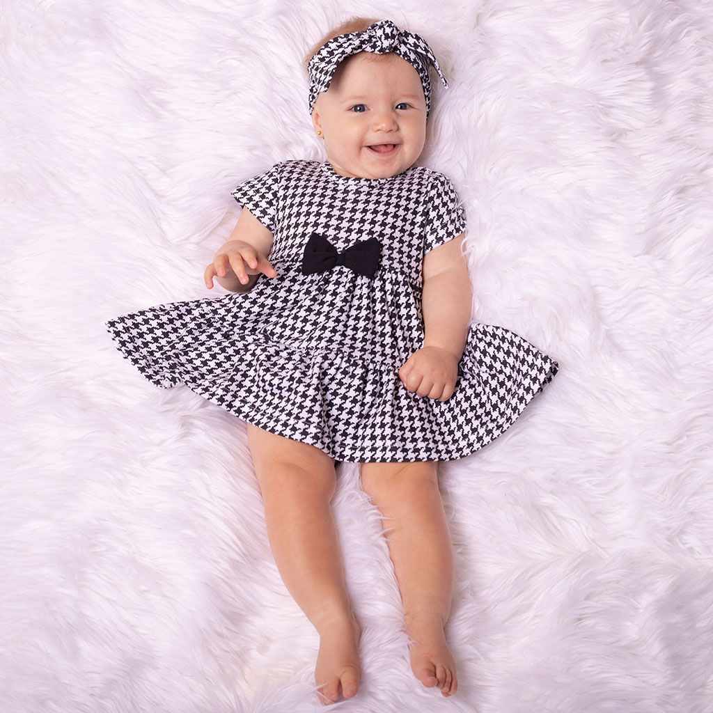 Stilska in praktična dojenčkova obleka-body z kratkimi rokavi Nicol Viki. Obleka A-silhuete s celotnim tiskom zanimivega vzorca je primerna za doma in sprehode. Obleka je zasnovana kot body in je nepogrešljiv del dekličinega garderobnega omare. Lepo je nabrana v pasu z mašnico. Zapiranje na gumbih na ramionih in med nogicami olajša oblačenje in previjanje. Viki je nova osupljiva kolekcija, načrtovana z mislijo na potrebe naših najmlajših. Material: 100% bombaž.