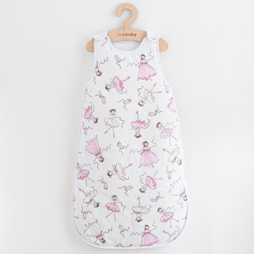 Praktična bombažna spalna vreča za dojenčke New Baby Ballerina Bella. Spalna vreča s potiskom plesne balerine je primerna za dojenčke že od rojstva, zaradi svoje nežnosti, mehkobe in praktičnosti pa vašemu dojenčku zagotavlja prijetno toploto. Zapiranje na gumbih na naramnicah in na zadrgo po celotni dolžini zelo olajša oblačenje in previjanje. Spalna vreča je izdelana iz zelo prijetnega bombažnega materiala, ki je polnjen s poliestrskimi vlakni. Sestava: 100% bombaž, polnilo: 100% poliestra. Dimenzije: obseg: 50 cm, dolžina: 65 cm.