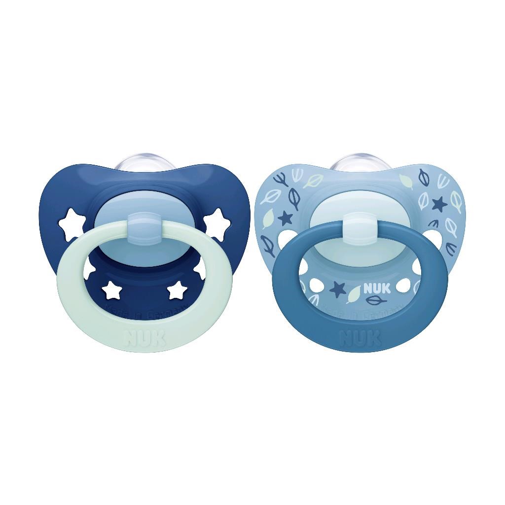 Dojenčki cuclji NUK Signature 6-18 mesecev. Cuclji imajo čudovit barven motiv. Ortodontska oblika podpira razvoj celotne ustne votline otroka. Cuclj je izboljšan in ima še bolj plosko obliko. Izdelan je iz visokokakovostne plastike in silikona. Pokrovček za cuclj in obroček sta izdelana iz polipropilena in ne vsebujeta BPA. Prednost silikona je, da je brez vonja in ga je enostavno očistiti. Ne vsebuje BPA. Velikost 2 (6-18 mesecev). Vsi NUK cuclji so redno testirani in spremljani s strani neodvisnih inštitutov. V pakiranju sta 2 kosa.