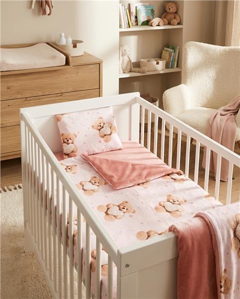 Čudovit dvojen set New Baby Safari za voziček. Set je narejen iz dveh vrst tkanin. Bombažni material s čudovitim otroškim motivom z ene strani in Velvet material z druge strani. Velvet je zelo prijeten in mehak na dotik ter dolgotrajno ohranja svojo prvotno obliko. Idealno je tako za dojenčke od rojstva kot za večje otroke kot igrača, za voziček ali na prostem. Set vsebuje blazino in odejo. Poudarjamo kakovost in zato je set iz Velveta izdelan iz zelo kakovostnega materiala, ki ne pušča barve in ne povzroča alergijskih reakcij. Set je mehak na dotik, topel, objemajoč, edinstven in zelo različna od drugih. Vse je napolnjeno z antialergijskim vlaknom. Sestava: z ene strani 100% bombaž s čudovitim otroškim vzorcem, druga stran je Velvet tkanina - 100% poliestrer, polnilo 100% antialergijsko vlakno. Material ustreza normi Oeko-Tex Standard 100. Dimenzije: blazina: cca 30x25 cm, odeja: cca 75x50 cm. Ti izdelki so varni, ker: