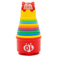 Sestavljanje in rušenje stolpa spodbuja kreativnost in domišljijo ter otroka uvaja v osnovne pojme ravnotežja in konstrukcije.