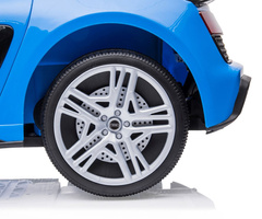 Ob pritisku na plin tega neverjetnega Audi R8 Spyder se vozilo začne premikati, obenem pa zasvetijo sprednje luči zahvaljujoč dvema motorjema. Velika, široka EVA kolesa z dezenom in športnimi platišči zagotavljajo mobilnost pri izletih izven doma, medtem ko profilirano sedeže zagotavlja udobje in varnost otroka. Jeklena os koles zagotavlja stabilnost in odpornost vozila. Zabava se ne konča: glasbene funkcije v kokpitu, USB priključek, Bluetooth, predvajanje glasbe, upravljanje glasnosti +/-, 4 pesmi s pritiskom na gumb na volanu levo ter zvok klaksonu s pritiskom na gumb na desni strani volana – vse to naredi igro še bolj zanimivo!