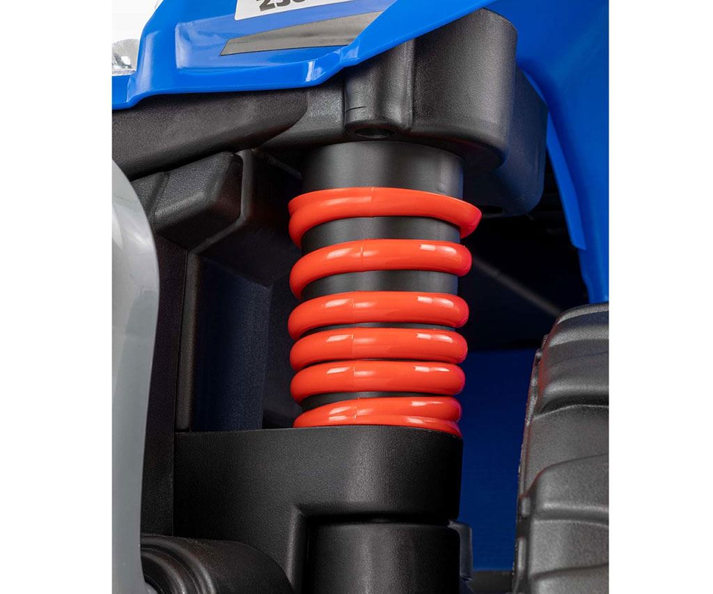 Velika, široka kolesa s terensko profilom zagotavljajo mobilnost pri izletih izven doma, oblikovano sedišče pa nudi dovolj udobja in varnosti za najmlajše uporabnike. Stabilnost in odpornost štirikolesnika zagotavljajo jekleni osi koles. V opremi je tudi trobenta, s katero bo zabava še bolj zanimiva.