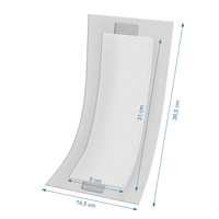 Dimenzije blazinice: širina 14,5 cm, dolžina 36,5 cm, debelina 0,5 cm.