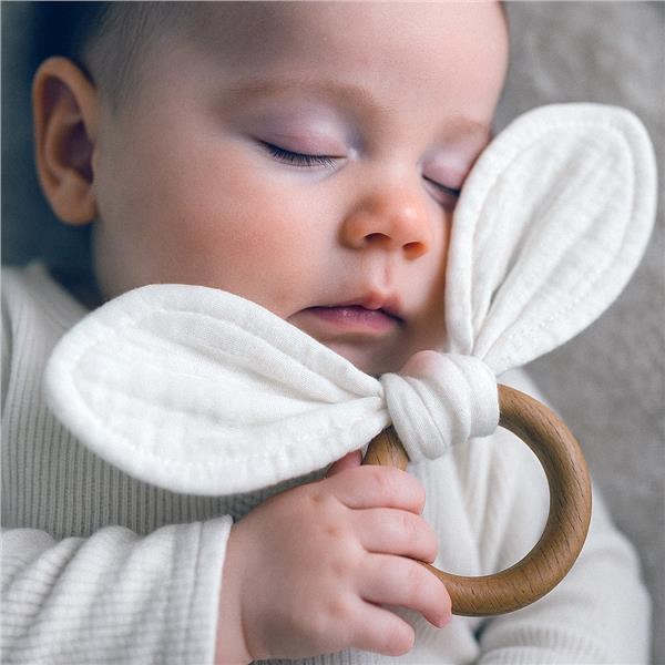 Žvečilka z muslin plenice je idealna kombinacija, ko se otroku izbijajo zobki. Žvečilka je izdelana iz bukovega lesa, prijaznega do narave, in mehkega muslin blaga. Popolnoma varna za otroke prinaša pomirjujoče olajšanje pri izbijanju zobkov. Žvečilka se lahko uporablja tudi kot igrača za dojenčke. Žvečilka se popolnoma prilega našim drugim muslin izdelkom in ustvarja čudovit komplet, ki ga lahko podarite na otroškem praznovanju.