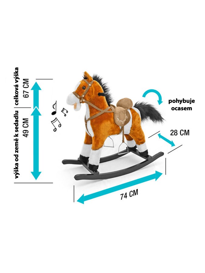 Izjemno lep čudežni konjik Milly Mally z mnogimi funkcijami. Ob pritisku na ušesca se konjik giblje s repom in usti ter oddaja zvoke. Narejen je iz mehkega plišastega materiala, kar omogoča vašemu otroku, da se dolgo zabava. Igrača ima sedlo, kolena in lesene ročaje. Konjika je mogoče odstraniti z gugalnega okvirja in ga uporabiti kot samostojno plišasto igračo. Pakiran je posebej v škatli, ki jo lahko uporabite tudi kot darilno embalažo. Trenutno so konjiki brez rdeče pentlje. Baterije niso vključene v paket.
