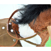 - konjček ima sedlo z oporami, uzdo in lesene ročaje