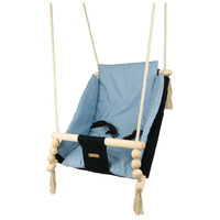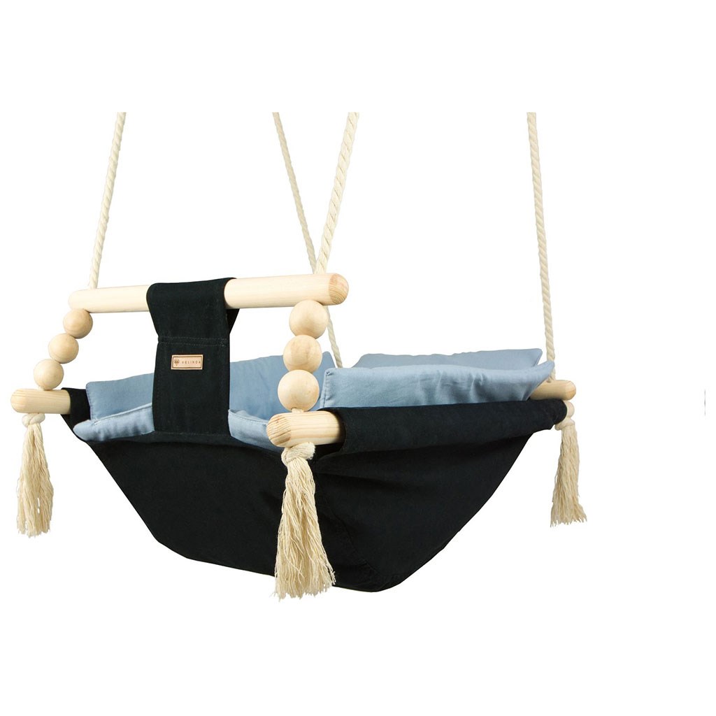 Zaradi uporabe prijetnega bombaža se tu otrok počuti prijetno, udobno in varno. Močna bombažna vrvica je opremljena s kovinskimi kolesi, ki omogočajo namestitev gugalnice tudi na teraso, verandu ali v vrt.