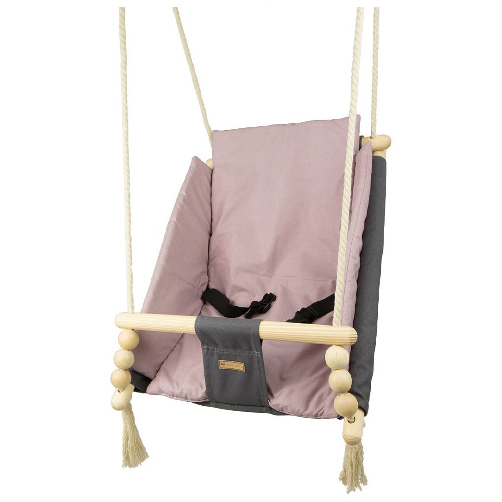 Zaradi uporabe prijetnega bombaža se tu otrok počuti prijetno, udobno in varno. Močna bombažna vrvica je opremljena s kovinskimi kolesi, ki omogočajo namestitev gugalnice tudi na teraso, verandu ali v vrt.