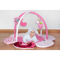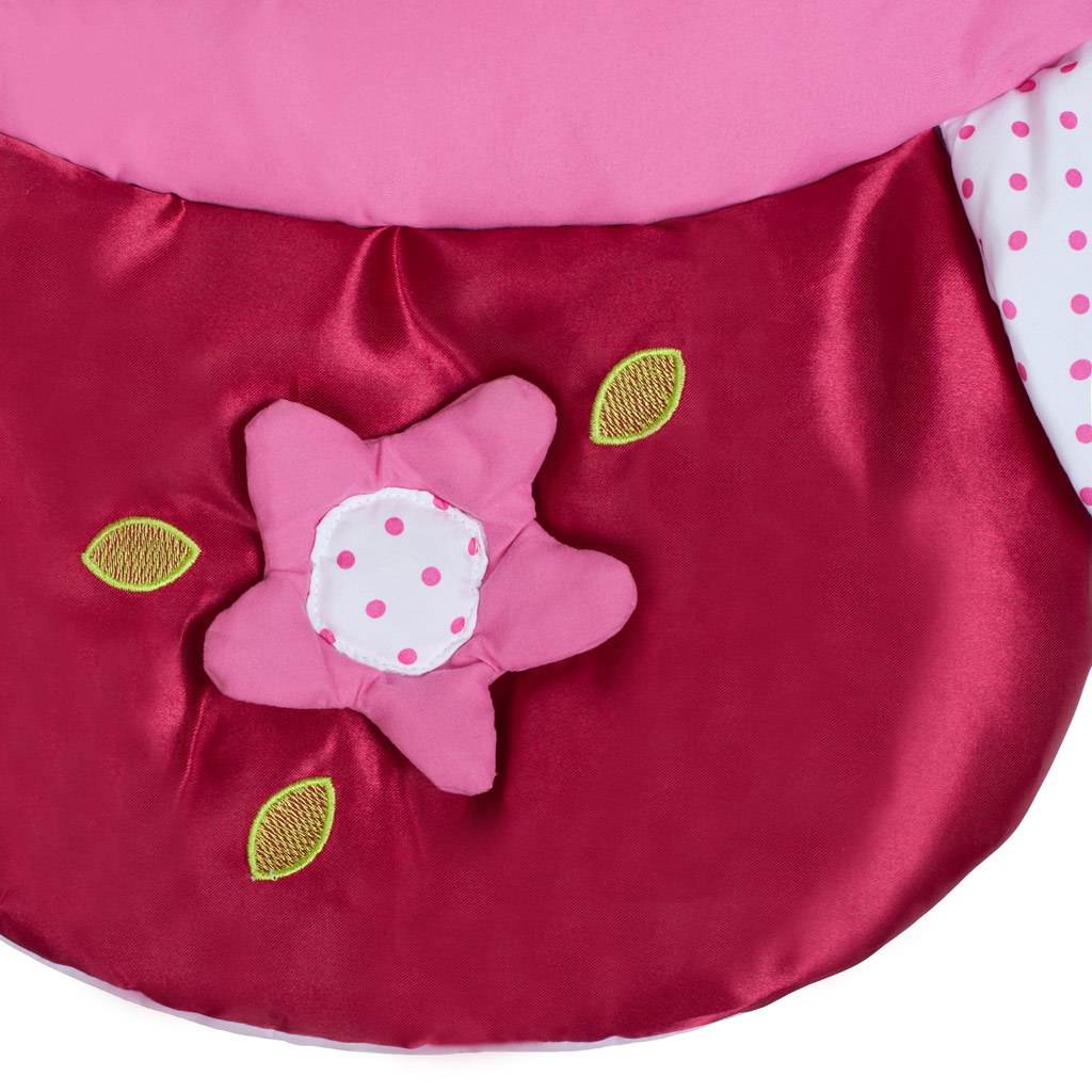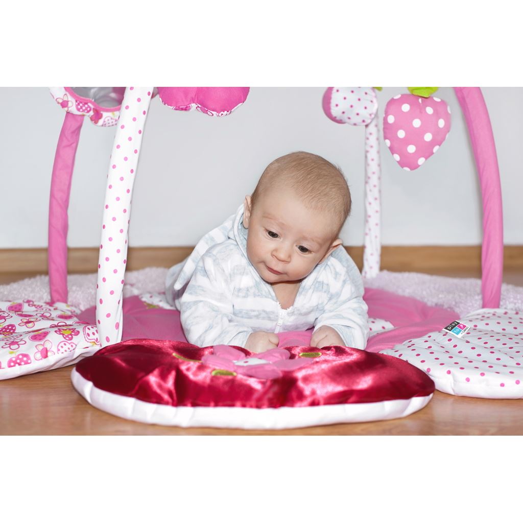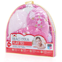 Čudovita izvirna izobraževalna igralna preproga PlayTo z obokom razvija otroško domišljijo skozi spoznavanje barv in oblik. Igralna preproga v obliki rože je v čudoviti svetli barvi. Spodbuja čute dotika, vida in sluha zaradi šuštečih in gibljivih delov. Prijeten in mehak material omogoča udobno ležanje na trebuhu ali hrbtu ter omogoča svobodo gibanja vašega otroka. Dojenček tako lahko pridobi varen, prijeten prostor, ki ga motivira k dvigovanju. Igrače se lahko enostavno odstranijo z oboka. Vsak dojenček bo na preprogi našel svojo najljubšo igračo. Sem spadajo ogledalo, šušteči deli, plišasta igrača s piščalko, plišasta igrača z grizalom in plišasta igrača z zvončki. Uporabna je tako doma kot na prostem. Zaradi preproste konstrukcije in priložene torbe je preprogo enostavno prenašati. Igrače se lahko izpnejo in uporabljajo samostojno. Priskrbite svojemu dojenčku pravljico za igranje in počitek. Za PlayTo sta vaša zadovoljstvo in udobje vašega dojenčka pomembna. Zato vam ponujamo to ljubko, udobno in zelo mehko igralno preprogo. Dušni cvet bo vašemu dojenčku zagotovil popolno udobje. Preproga vam zagotavlja idealno podlago za otroka v obdobju plazenja. Če preproge ravno ne uporabljate, jo lahko enostavno zložite in zaščitite pred prahom ali morebitnimi poškodbami. Preprogo boste lahko enostavno razgrnili v minuti. Dimenzije: premer: cca 100 cm, višina cca 54 cm. Primerna za otroke od 3 mesecev.