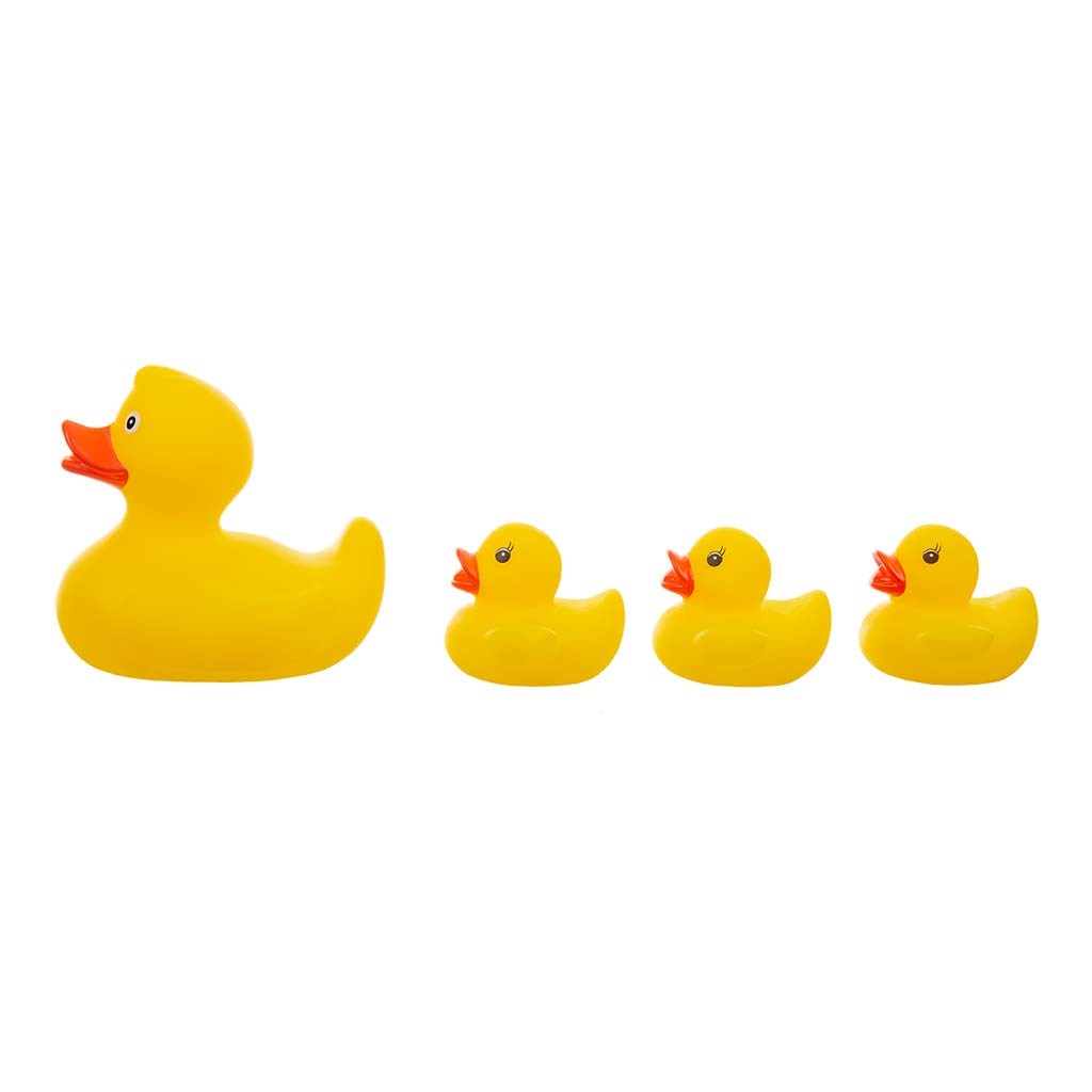 Naš komplet vsebuje 4 gumene račke - mamo račko in 3 majhne račke.