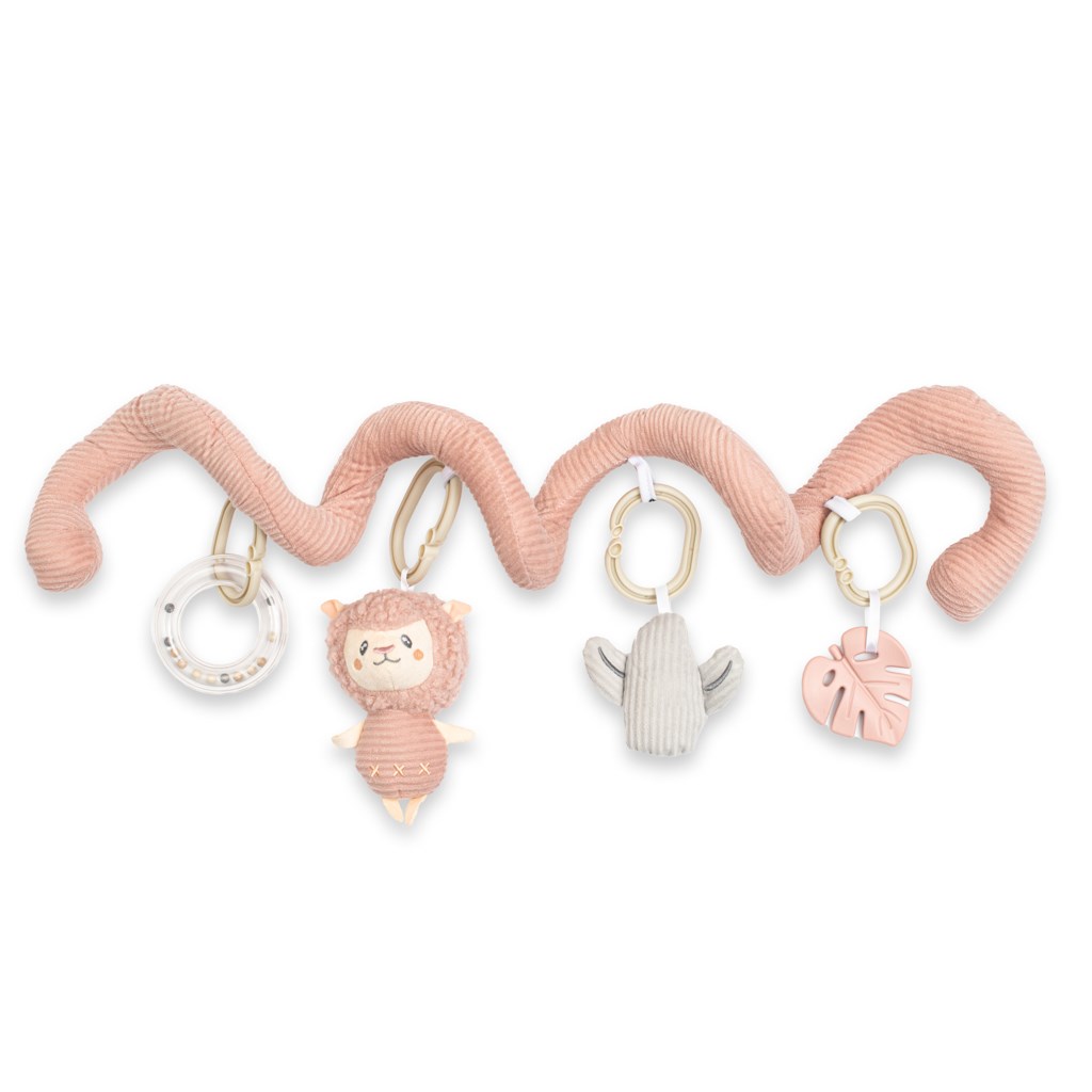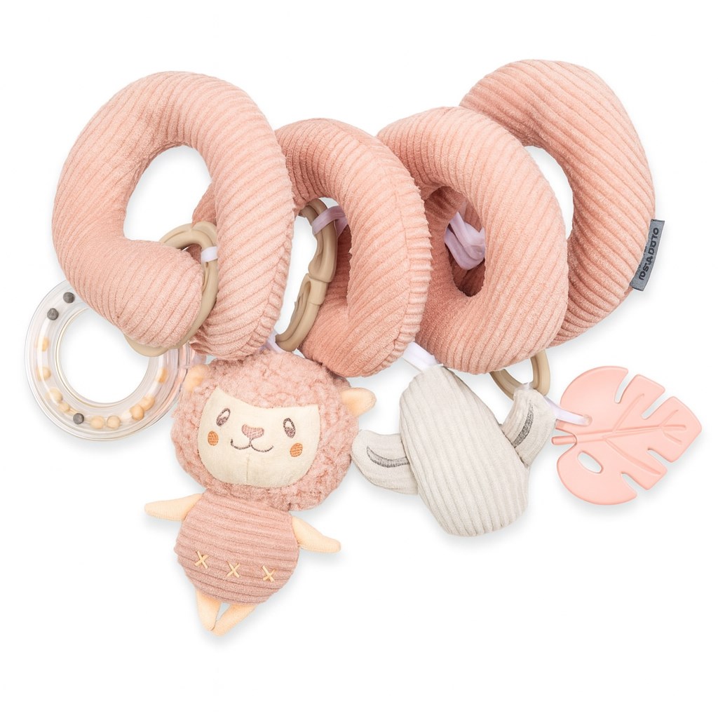 Igrača ima zelo kreativno in izvirno zasnovo lame, ki bo razveselila tako otroke kot odrasle. Naša spirala je opremljena z različnimi elementi, vključno s piščalko, grizalom in ropotuljo ter nudi interaktivno in stimulativno zabavo za male raziskovalce. Zaradi njenega dizajna jo lahko enostavno pritrdite na voziček ali posteljico in tako zagotovite zabavo doma in na sprehodih.