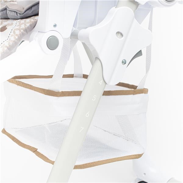 Otroška jedilna stolica Baby Mix je spojitev sodobnega oblikovanja in praktične rabe. Izdelana je iz kakovostnih materialov, ki otroku zagotavljajo zadostno udobje in varnost. Občudovali boste visoko kakovost prevleke, ki se enostavno čisti. Del jedilne stolice je dvojna jedilna mizica, praktična košara za drobnarije in novorojenčkova blazina. Višino stolice je mogoče nastaviti v sedmih položajih, naslon za hrbet pa v treh položajih. Opora za noge je opremljena z nastavitvijo v 2 položajih. Opora pod nogami je lahko nastavljena v tri položaje. Varnostni pasovi zagotavljajo maksimalno varnost pri uporabi. Kolesa so zelo praktična, ko potrebujete premikati stolico. Uporabljena so na zadnji strani. Stolica je praktična pomoč pri oskrbi dojenčka in poenostavi hranjenje vašega malčka.